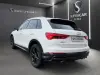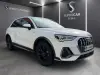 No exterior, a carroçaria em branco contrasta elegantemente com os elementos escurecidos do pacote S line, conferindo-lhe uma imagem mais desportiva e moderna. As jantes de liga leve S line, os detalhes específicos da versão e a assinatura luminosa Audi reforçam o carácter dinâmico e premium deste Q3, garantindo uma presença forte e atual em qualquer contexto.