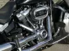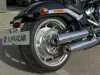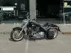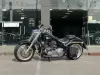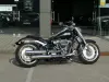 A carroçaria em preto brilhante destaca-se pelo design clássico Fat Boy: farol redondo LED com assinatura luminosa, guiador largo cromado, escapes duplos, malas laterais em pele e rodas de liga leve com perfil gordo. O visual baixo, musculoso e intemporal transmite toda a presença premium da Harley-Davidson.