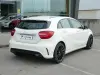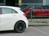 A carroçaria em branco com pack AMG Line inclui grelha desportiva, saias laterais, para-choques mais agressivos, jantes de liga leve AMG em preto (com pinças de travão verdes) e duplas saídas de escape. Os faróis com luzes diurnas LED e o design compacto conferem um visual jovem, dinâmico e premium – perfeito para cidade e estrada.
