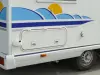 A carroçaria em branco realça os gráficos decorativos, jantes de aço, suporte para bicicletas e janelas múltiplas, conferindo um aspeto prático. A silhueta furgão convertido mantém linhas funcionais sem comprometer o espaço interior nem a bagageira versátil.