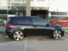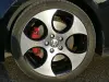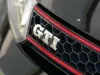 A carroçaria em preto com pack GTI realça os faróis com luzes diurnas LED, grelha com linha vermelha, jantes de liga leve multiraio em prata/preto e pinças de travão vermelhas, conferindo um aspeto agressivo. A silhueta hot hatch mantém linhas desportivas sem comprometer o espaço interior nem a bagageira versátil.