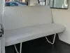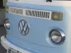 A carroçaria em azul claro com teto branco mantém a linha original impecável: faróis redondos cromados, grelha frontal característica, jantes com aros brancos e detalhes em cromado que brilham como no primeiro dia. O visual icónico da Série 2 (T2) continua a fazer sorrir quem o vê – é mais do que uma carrinha, é uma peça de história sobre rodas.