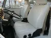 No interior, o ambiente é fiel ao espírito original mas confortável: bancos em vinil branco impecáveis, painel de instrumentos clássico com mostradores analógicos, volante de três raios e sistema de rádio JVC moderno para desfrutar da viagem. O espaço para 5 ocupantes é generoso, com excelente visibilidade e uma sensação de liberdade que só os clássicos conseguem transmitir.